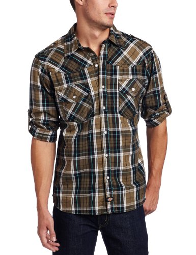 Dickies Men's Fashion Western Plaid Shirt, Light Sage, Large