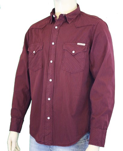 Lucky Brand Men's Long Sleeve Button Down Western Style Shirt Maroon 7MD4192-Small Overview