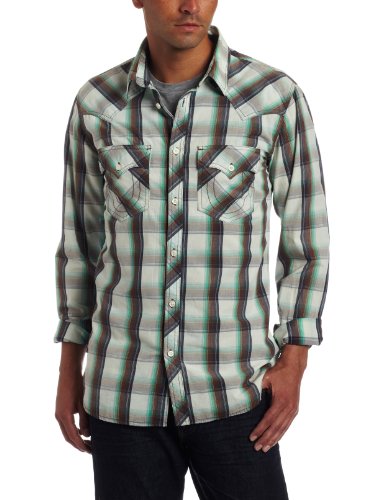 True Religion Men's Long Sleeve Plaid Poplin Western Shirt, Seafoam, Small