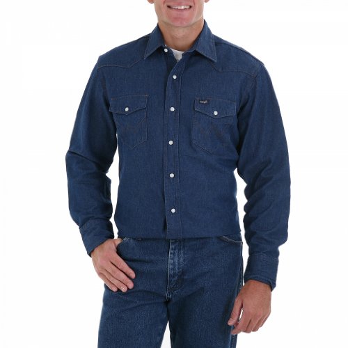 Wrangler Men's Cowboy Cut Work Western Long Sleeve Shirt, Rigid Indigo Denim, XX-Large
